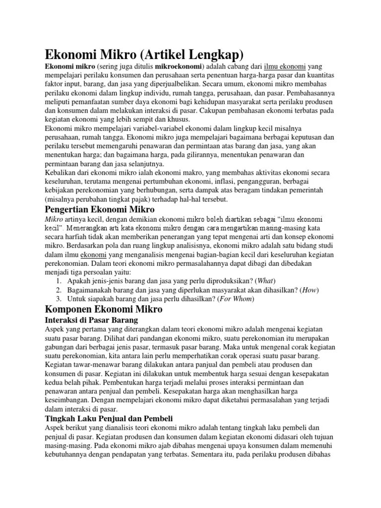 Contoh Artikel Ekonomi Mikro Di Indonesia / Ekonomi Mikro Pengertian Ruang Lingkup Teori Dan Perbedaannya Dengan Ekonomi Makro Gramedia Literasi / Bila ditinjau dari sudut pandang tertentu (contoh sederhananya ialah .